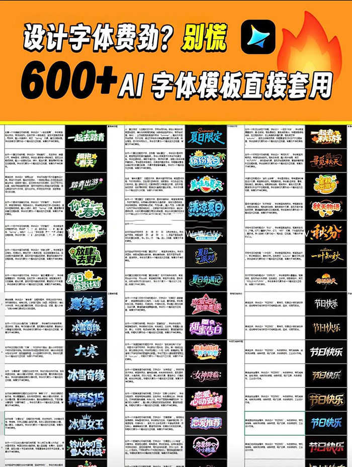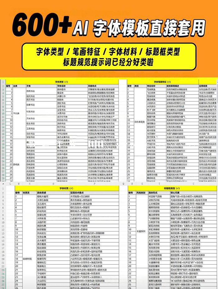 600 + 即梦 AI 字体提示词模板 含多风格设计灵感素