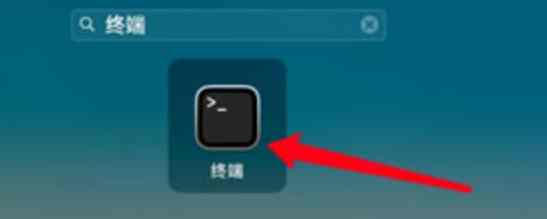 点击Dock上面的启动台,然后在启动台中搜索“终端”应用,并打开它。